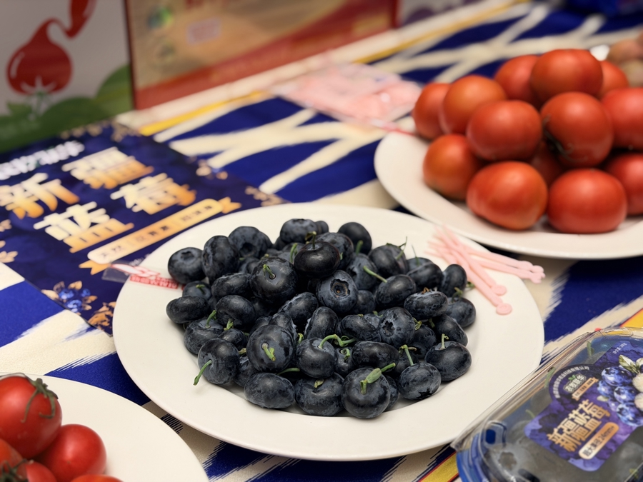 新疆农牧投集团品牌市场部负责人刘猛介绍,新疆和田地区被誉为水果优生地带的黄金位置。“我们在和田地区开展万亩现代设施农业项目,同时依托天然光照资源与自然环境,将戈壁荒滩变为产业高地。我们还积极引入国内先进技术团队,这款新疆蓝莓就是和上海一家科技公司合作开发的新品种,实现全程数字化管控生产。”